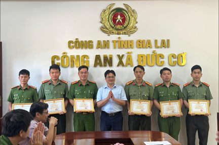Phát biểu tại buổi khen thưởng, lãnh đạo Đảng ủy, UBND xã ghi nhận, biểu dương tinh thần trách nhiệm, sự mưu trí, quyết tâm đấu tranh với tội phạm của lực lượng Công an xã Đức Cơ; đồng thời đánh giá cao sự phối hợp chặt chẽ, hiệu quả giữa các lực lượng trong quá trình điều tra, truy xét đối tượng.