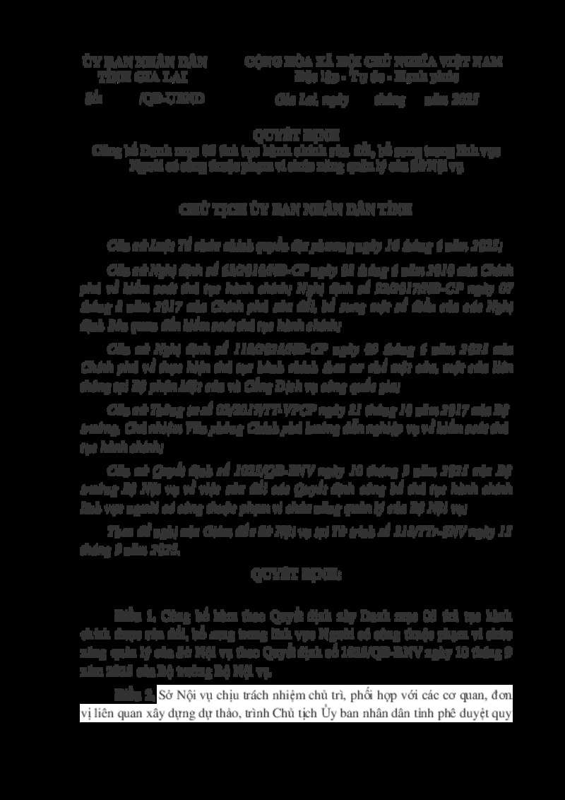 QUYẾT ĐỊNH Công bố Danh mục 05 thủ tục hành chính sửa đổi, bổ sung trong lĩnh vực Người có công thuộc phạm vi chức năng quản lý của Sở Nội vụ 29/11/2025, 10:13:34 - Lượt xem: 0 Tweet Thêm vào danh sách Báo xấu Thông tin tài liệu QUYẾT ĐỊNH Công bố Danh mục 05 thủ tục hành chính sửa đổi, bổ sung trong lĩnh vực Người có công thuộc phạm vi chức năng quản lý của Sở Nội vụ