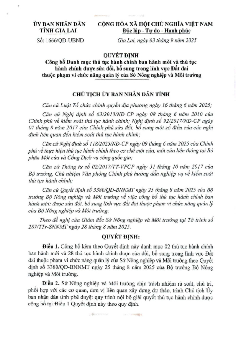 Quyết định công bố danh mục TTHC mới và TTHC sửa đổi bổ sung trong lĩnh vực Đất đai 29/11/2025, 10:45:18 - Lượt xem: 0 Tweet Thêm vào danh sách Báo xấu Thông tin tài liệu Quyết định công bố danh mục TTHC mới và TTHC sửa đổi bổ sung trong lĩnh vực Đất đai