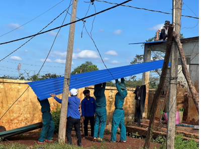 Ngày 8/11/2025, Đoàn Thanh niên xã Đức Cơ phối hợp cùng lực lượng dân quân đã hỗ trợ làm lại mái nhà cho hộ dân bị hư hỏng do ảnh hưởng của cơn bão vừa qua. Tại đây, lực lượng dân quân, thanh niên đã tích cực tham gia vận chuyển vật liệu, lợp tôn, dọn dẹp và giúp bà con ổn định cuộc sống sau ảnh hưởng của bão Kalmaegi. Với tinh thần “Đâu cần Thanh niên có, đâu khó có Thanh niên”, lực lượng thanh niên, dân quân đã góp phần giúp bà con sớm ổn định cuộc sống, khôi phục sinh hoạt thường ngày.