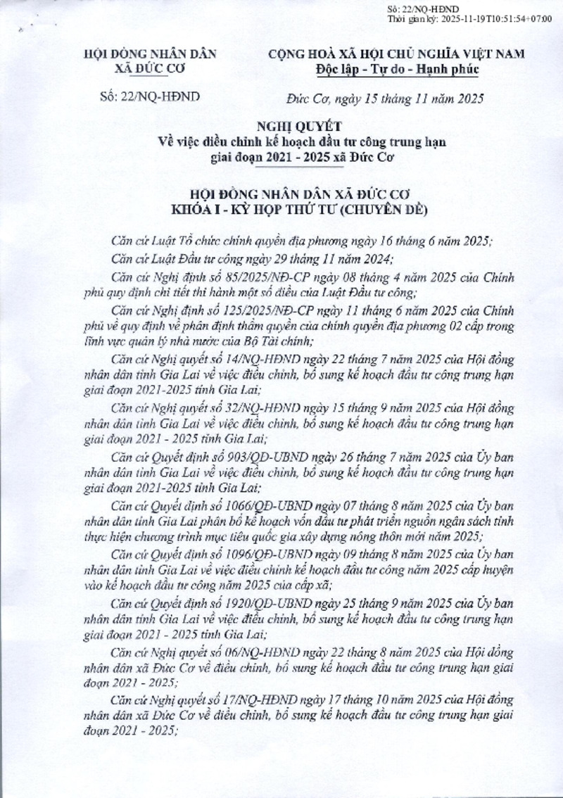 | Số hiệu | 22/NQ-HĐND | Cơ quan ban hành | HĐND xã Đức Cơ |